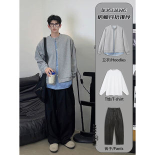 男高级感痞帅时尚 卫衣ootd春秋穿搭一整套装 外套 cleanfit开衫 美式