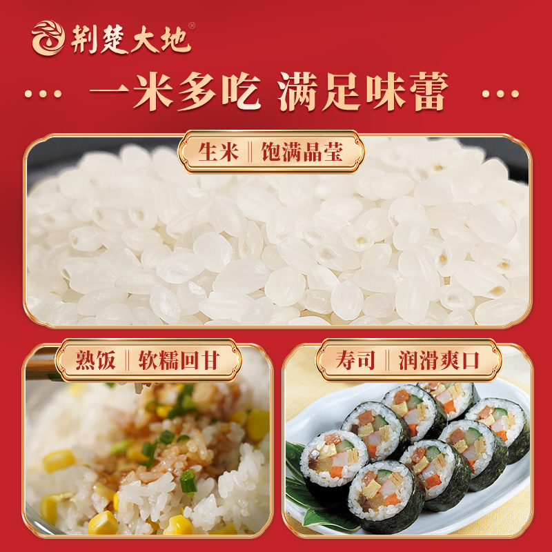 荆楚大地大米珍珠香米2.5kg新米一级粳米东北大米5斤Q弹香糯真空
