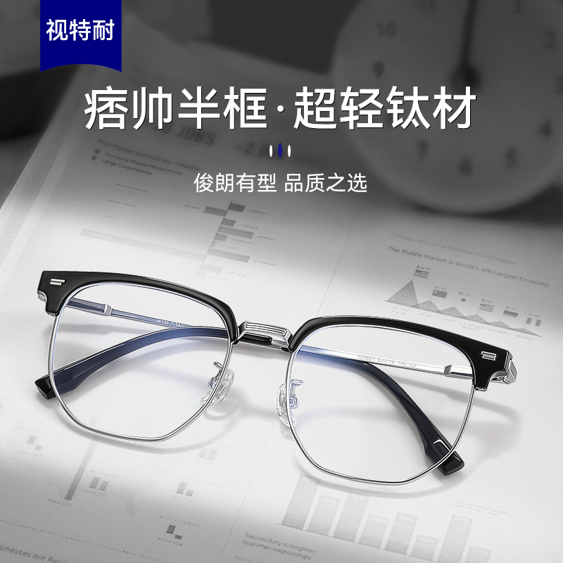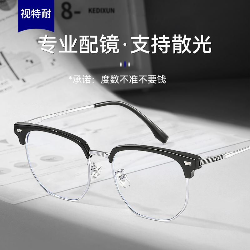 定制专业配镜男士 半框新款 可配度数高级感男式 痞帅风近视眼镜男款