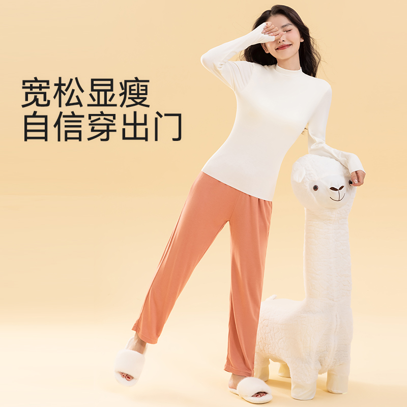 薄款 长裤 宽松大码 可外穿单件裤 德绒发热睡裤 子睡衣家居裤 女春秋季