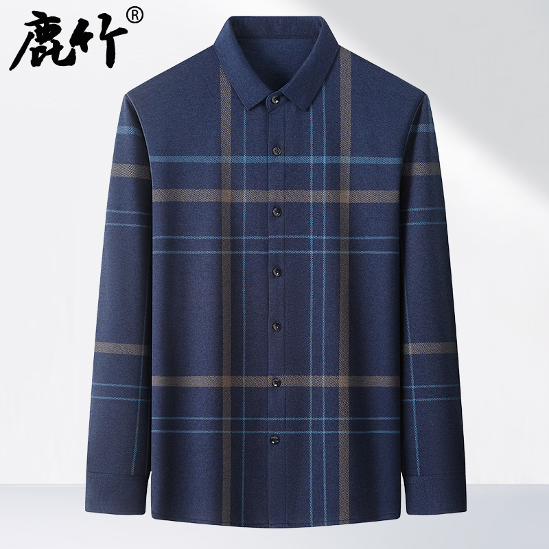 长袖 条纹打底衬衣中老年男装 衬衫 爸爸秋装 上衣服 2025新款 中年男士