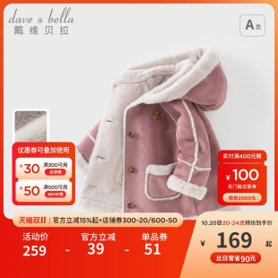 童装 连帽上衣女宝宝麂皮绒开衫 新款 戴维贝拉儿童加绒外套女童冬装
