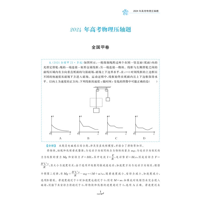 浙大优学2024新高考物理资料教辅书二轮复习真题选择题压轴题专题专练真题 蔡明哲 2025一题一课高考物理压轴题 分析与解第二版