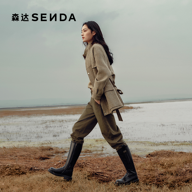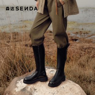 显瘦气质百搭大筒围直筒高筒长靴ZTE44DG4 时尚 森达骑士靴女鞋 冬款