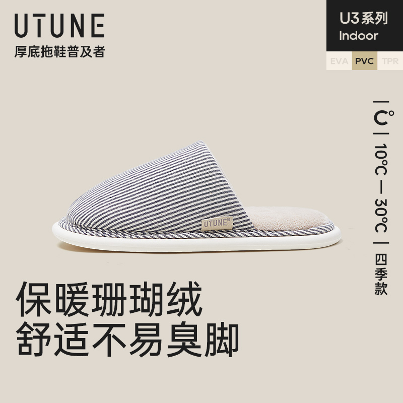 室内家用情侣保暖女毛毛绒地板防滑大码 秋冬季 4546 男款 优调棉拖鞋