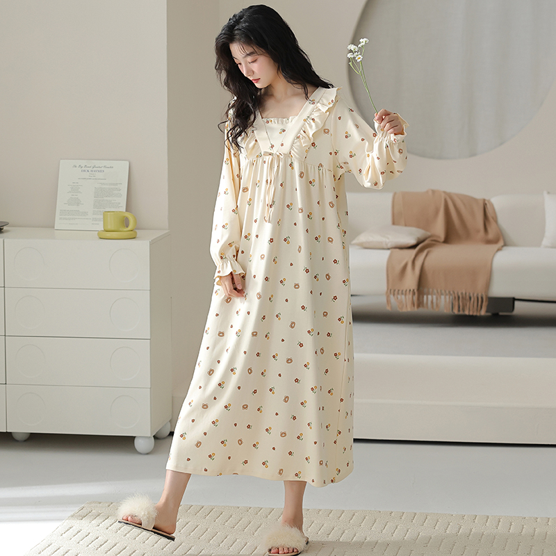 女款 2024新款 秋冬长袖 法式 睡衣 睡裙长款 可爱公主风春秋款 纯棉秋季