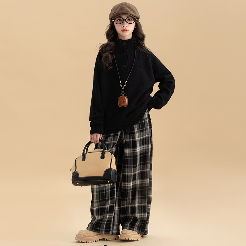 秋季 大童早秋格子裤 儿童洋气2025新款 春秋款 秋装 贝田女童毛衣套装