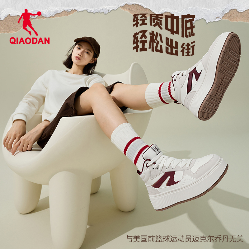 棉鞋 月白 休闲运动鞋 2025年秋季 乔丹高帮加绒保暖厚底增高女板鞋