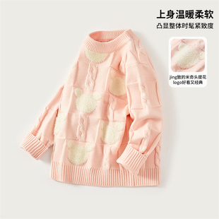 毛衣 含羊毛撞色蝴蝶结提花通勤圆领套头针织衫 LILY2025冬新款 女装