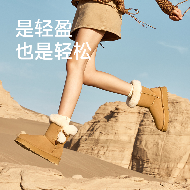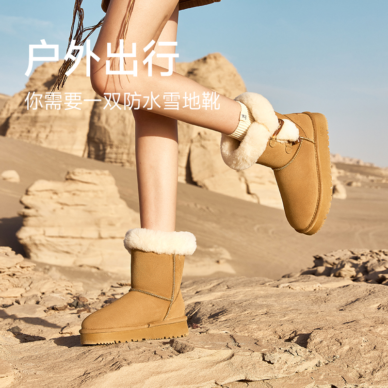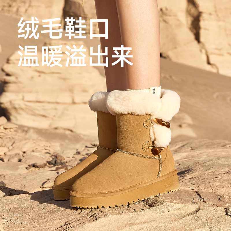 UBZ 防水毛毛厚底牛角扣雪地靴女2025冬加绒加厚保暖东北增高棉鞋