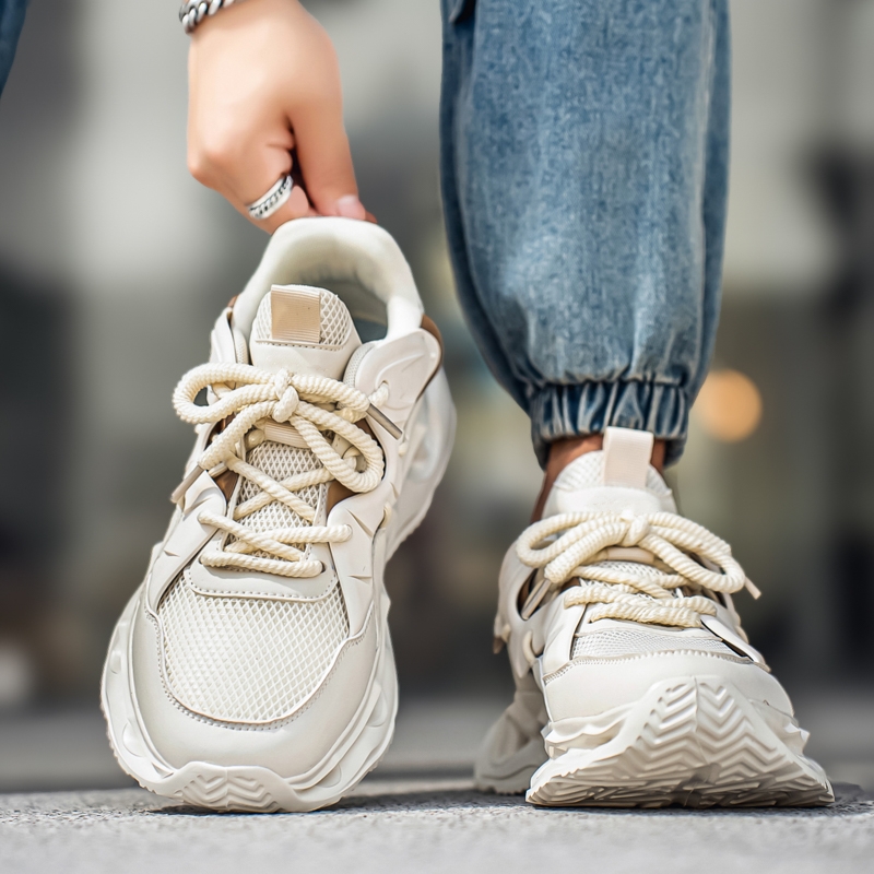 网面透气高级感百搭休闲跑步防滑运动厚底内增高老爹潮鞋 男鞋 夏季