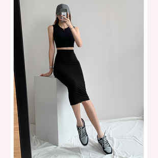 辣妹紧身弹力包臀裙莫代尔春夏欧美性感修身 半身裙女 一步裙中长款