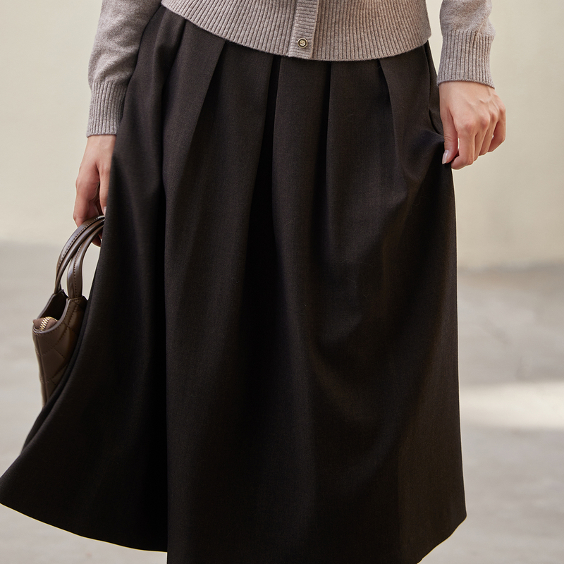 毛呢百褶裙女秋冬款 高腰显瘦a字短裙百搭口袋卡其半身裙 2025新款