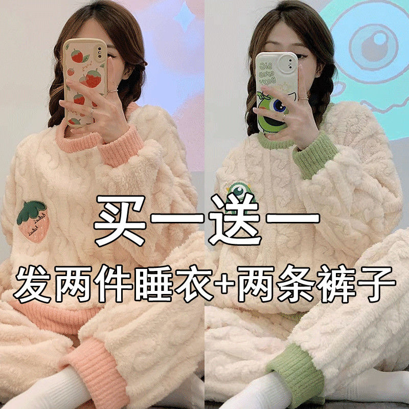 半边绒可爱加厚冬男士 有棵树睡衣女款 情侣家居服套装 成毅同款