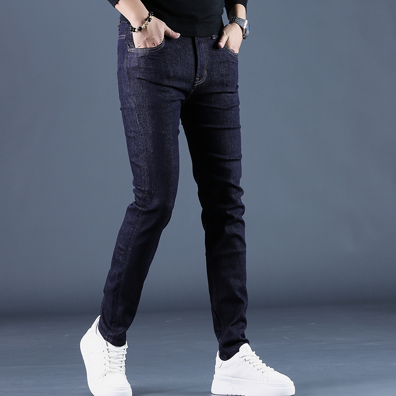 新款 小脚百搭弹力显瘦高端休闲长裤 深蓝牛仔裤 修身 潮 男士 2025秋季