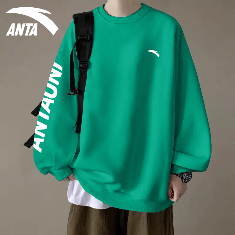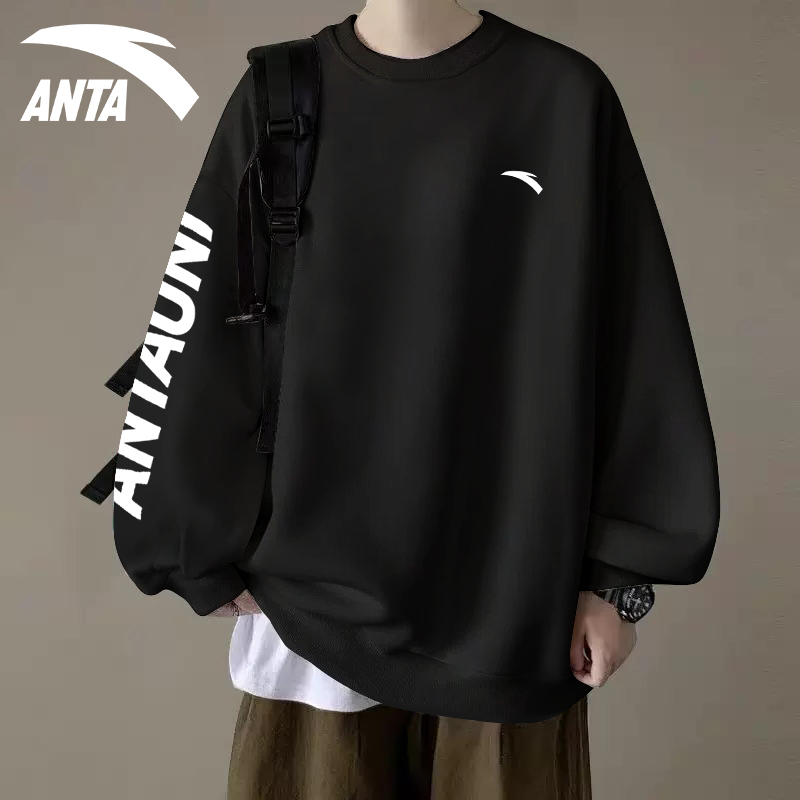 青少年官方旗舰运动长袖 安踏卫衣男士 圆领灰色套头衫 新款 T恤 秋季