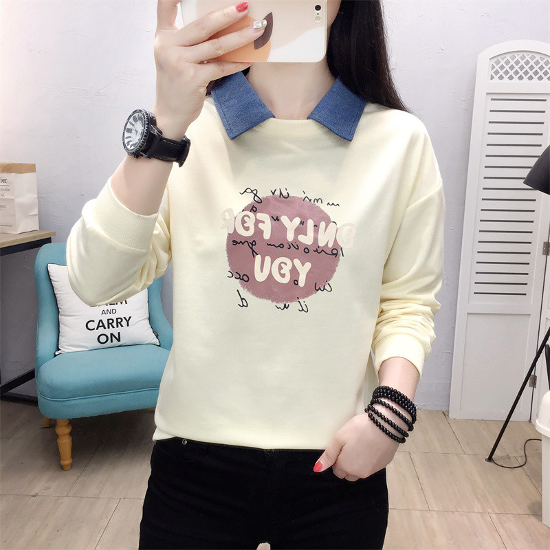 假两件上衣女宽松POLO领春秋高级百搭衬衫 秋季 T恤女2025新款 长袖