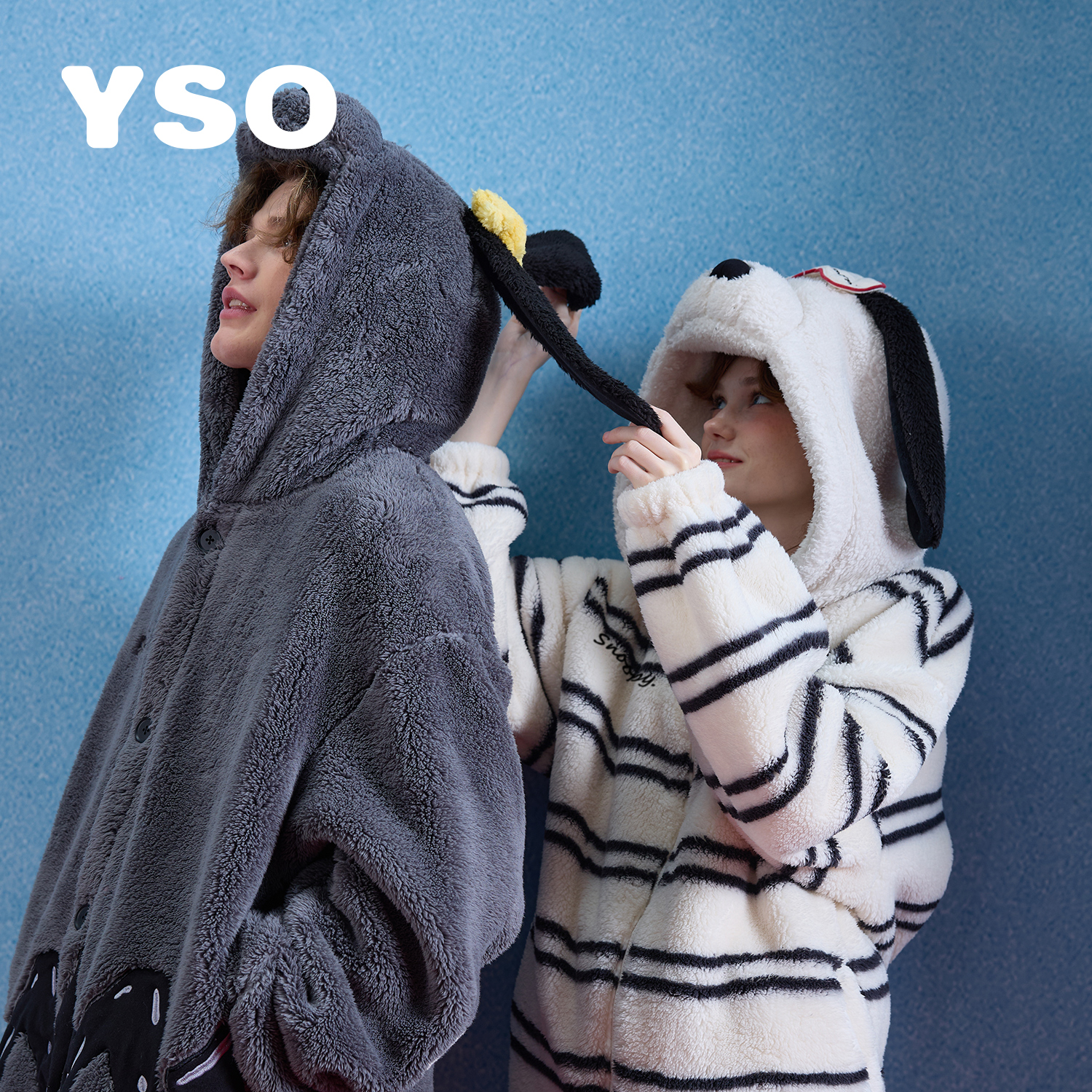 套装 yso 加绒保暖珊瑚连帽冬男女款 睡衣秋冬情侣款 史努比系列