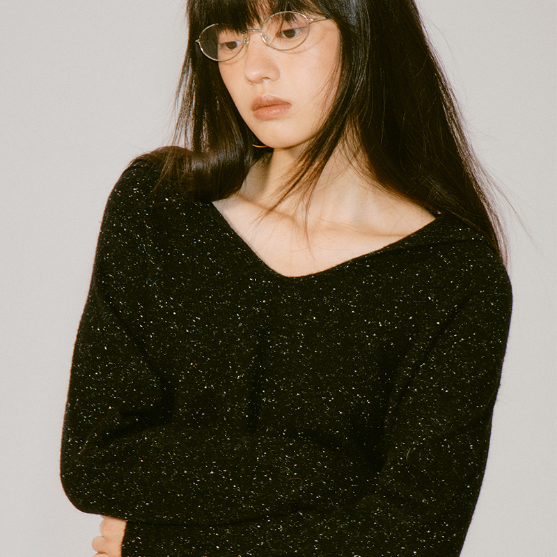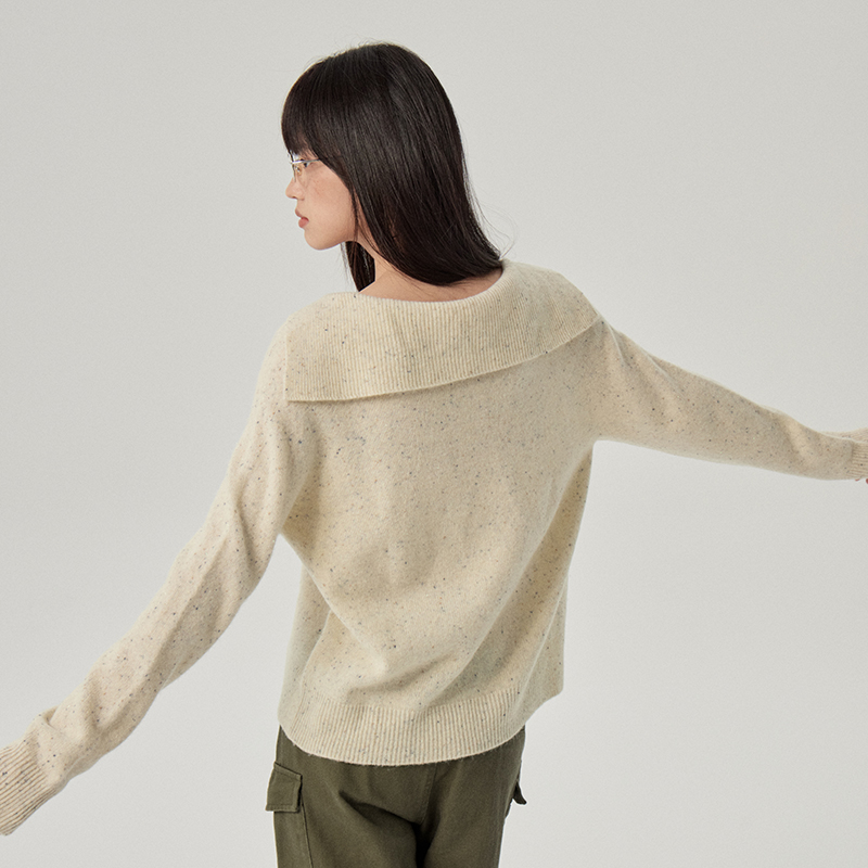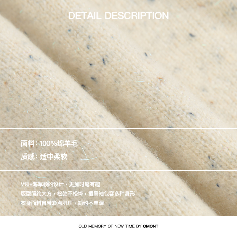 V领套头彩点纱毛衣 春秋季 omont蛋挞家 100%绵羊毛海军领针织衫