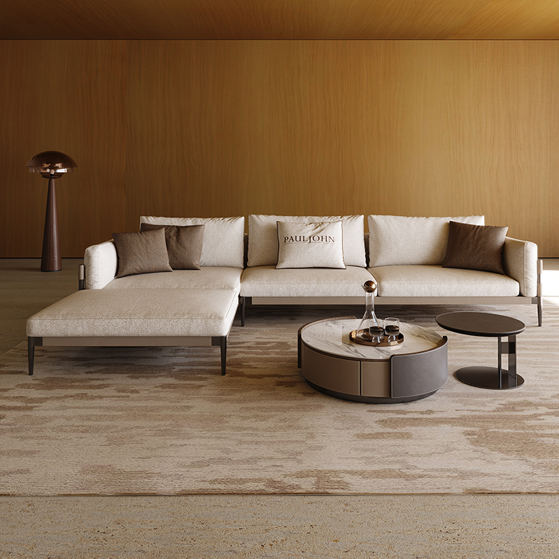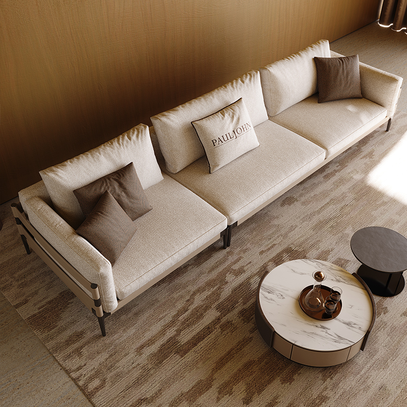 PAULJOHN意式 极简布艺沙发别墅客厅进口棉麻直排羽绒沙发皮布新款
