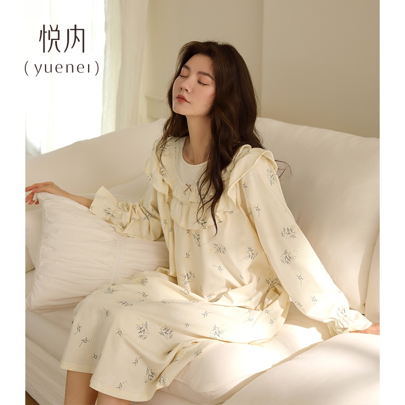 幸棉法式 睡裙女秋超仙睡衣家居服露背高级感连衣裙宽松长裙子 长袖