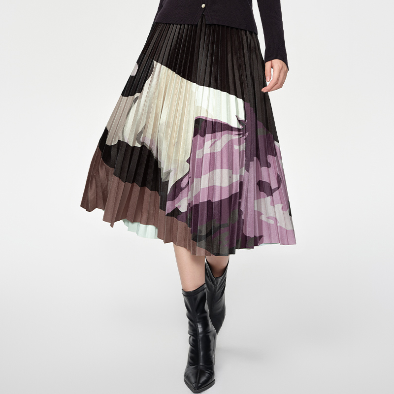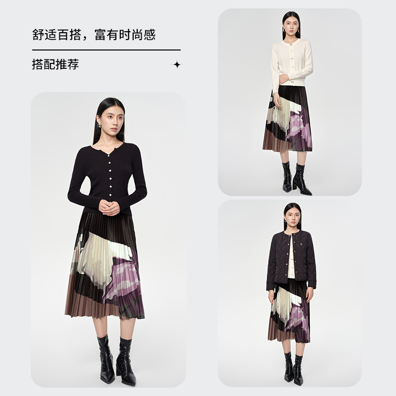 佐丹奴仿毛呢半身裙女秋冬新款 半松紧腰格蕾系压褶a字裙05465856