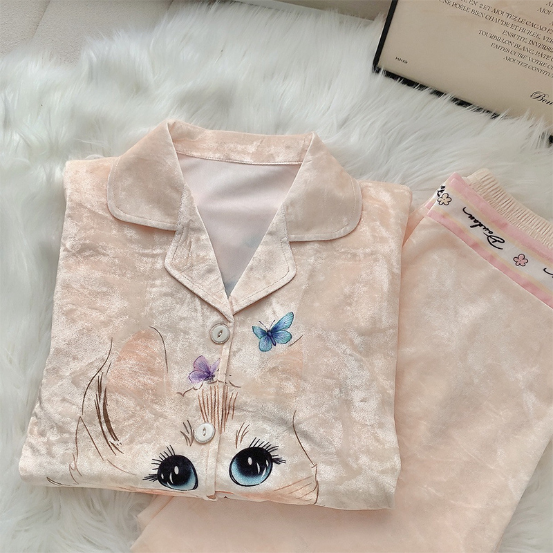 可爱猫咪套装 2025新款 春秋薄绒网红家居服 长袖 金丝绒睡衣女秋冬季