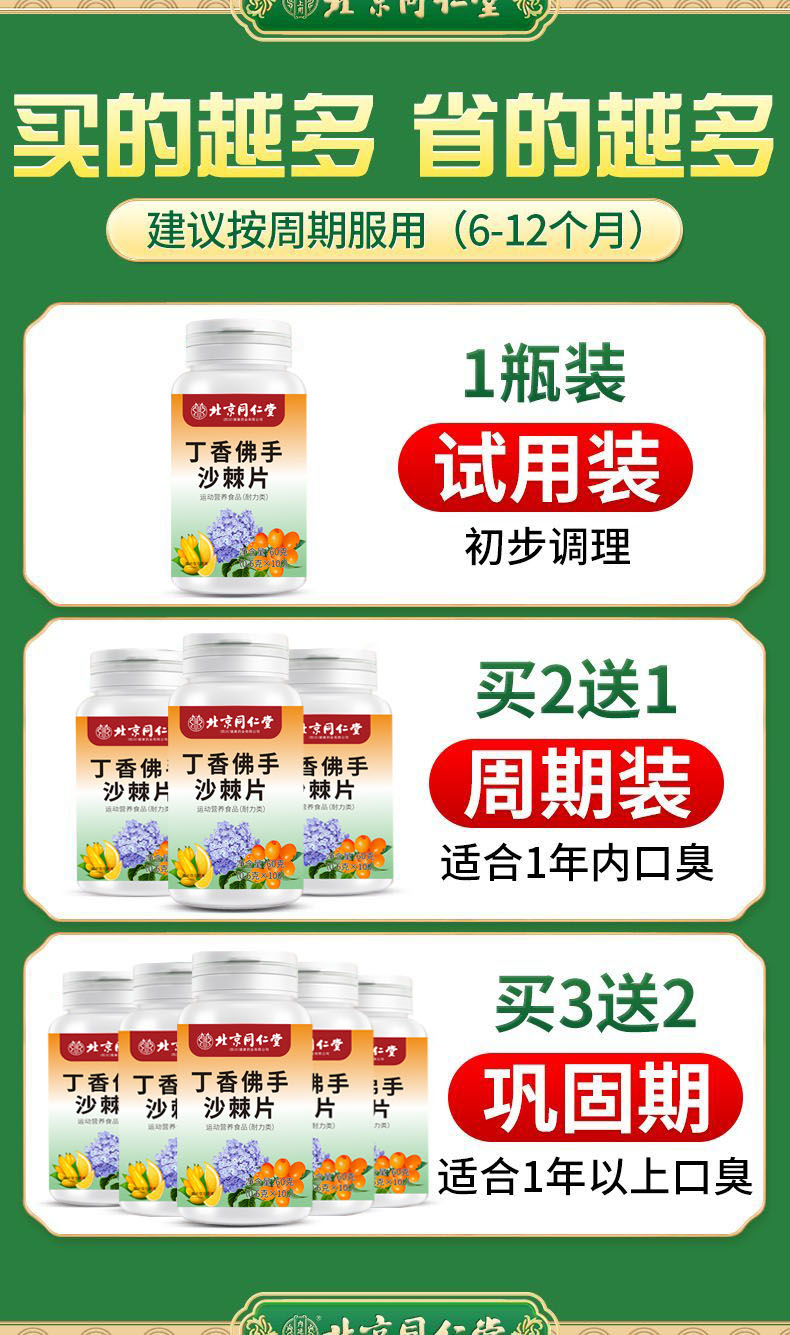北京同仁堂丁香佛手沙棘片口气口臭口苦调理肠胃官方旗舰店护胃