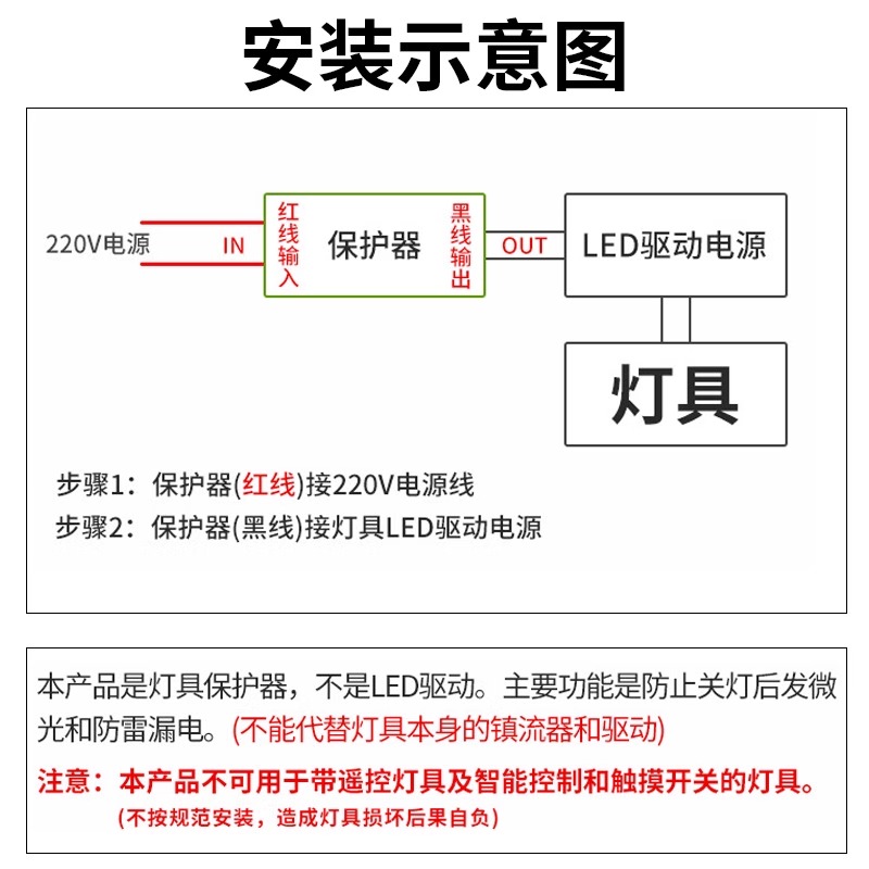 LED灯具保护神器消除微光防漏电关灯频闪客厅吸顶灯暗光断电微亮