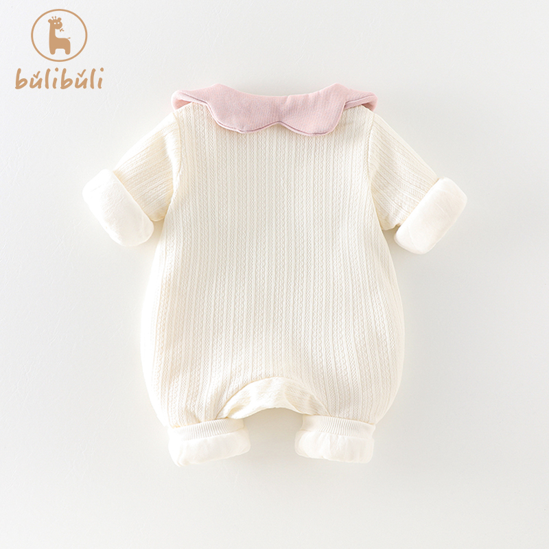 婴儿衣服秋冬装 女宝宝加绒保暖连体衣秋冬外出满月百天哈衣爬爬服