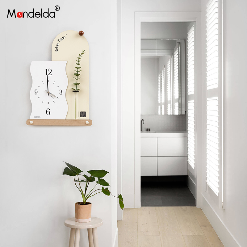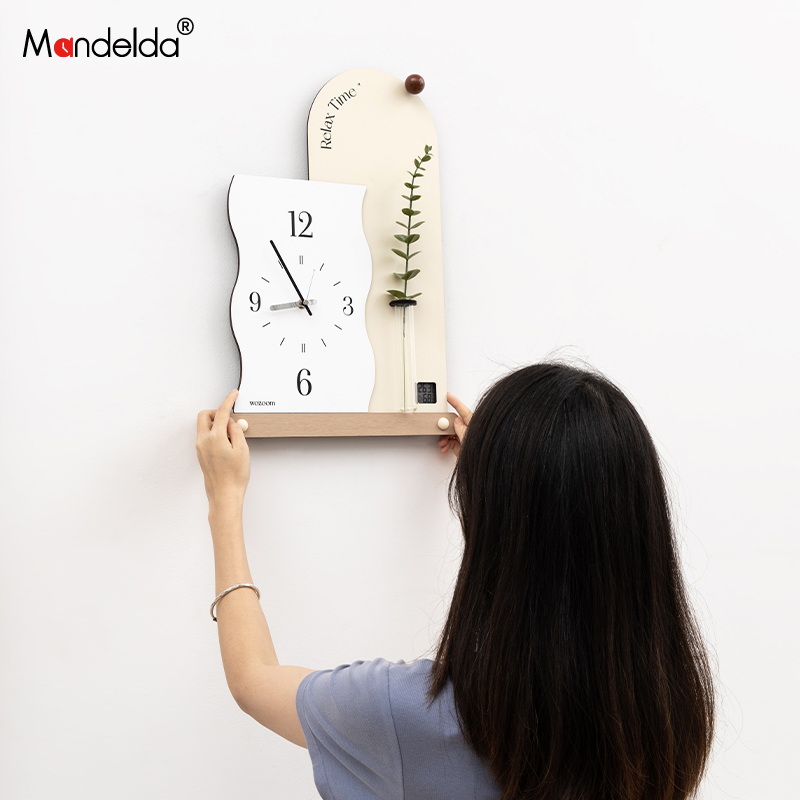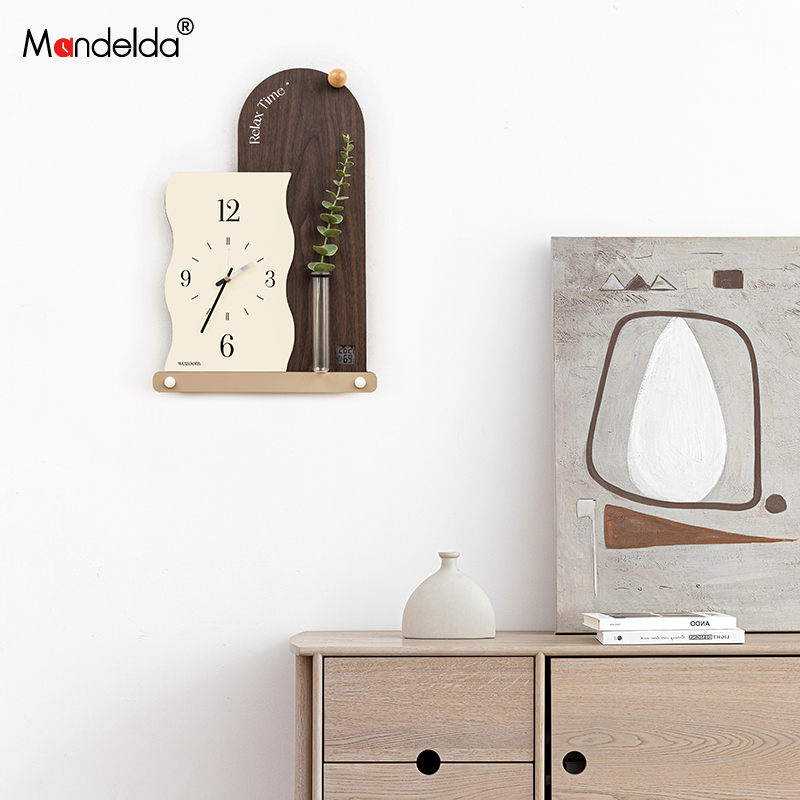 Mandelda免打孔现代简约挂墙时钟家用2025新款 客厅挂钟创意钟表