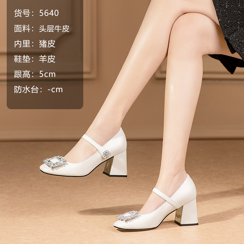 新款 康莉春季 高跟单鞋 女方头真皮通勤时尚 子 方扣浅口鞋 博主推荐