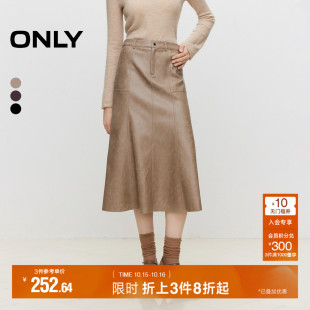 衣香丽影咖色直筒高纤皮裙女2025年秋装 显高显瘦开衩半身裙子 新款
