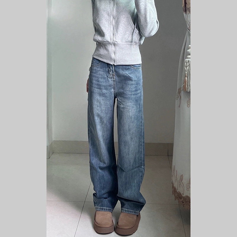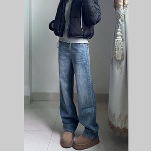 显瘦宽松直筒牛仔裤 王家有鱼秋季 2025百搭修身 复古蓝阔腿裤 女 新款
