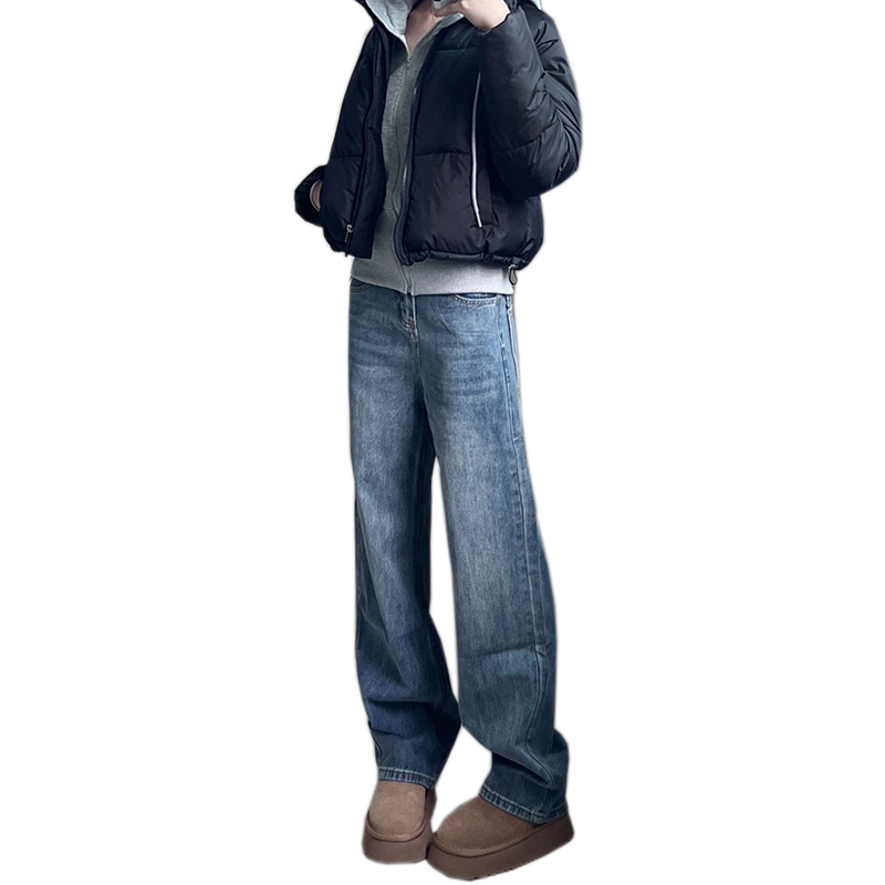 阔腿裤 王家有鱼2025秋季 女复古宽松小个子修身 显瘦直筒牛仔裤 新款