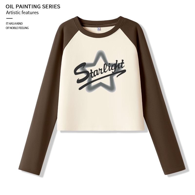 修身 打底衫 百搭上衣服 T恤女春秋内搭短款 设计感小众正肩纯棉长袖