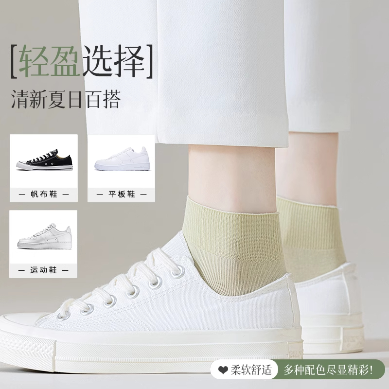 米昕秀 女士船袜中筒袜百搭舒适透气不掉跟防臭袜子 糖果色棉袜