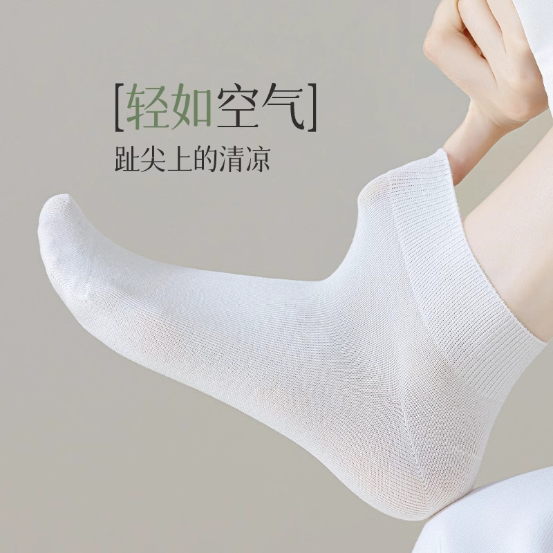 棉伙棉伴海藻袜舒适抗菌防臭男女商务运动纯色裸感中筒袜