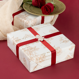 纸大尺寸七夕情人节送女生结婚生日伴手礼盒高级感花束打包书皮彩纸 玫瑰人生复古英文礼物包装 ISUKA 一树家