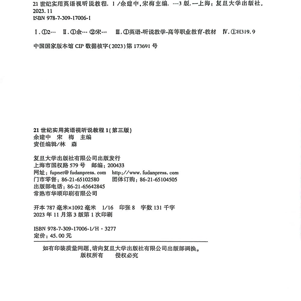 社 21世纪实用英语视听说教程1 复旦大学出版 余建中 9787309170061 第3版