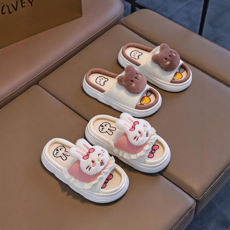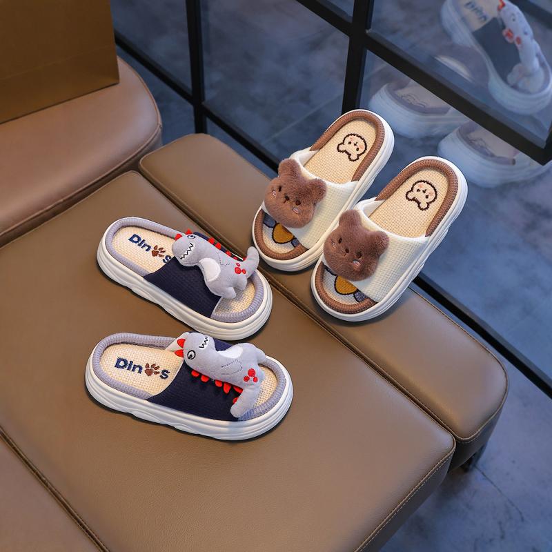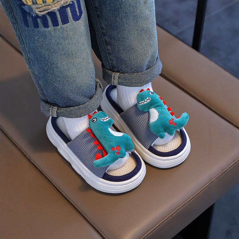 棉拖鞋 男童恐龙中大防滑室内家居女童软底四季 儿童亚麻拖鞋 夏季