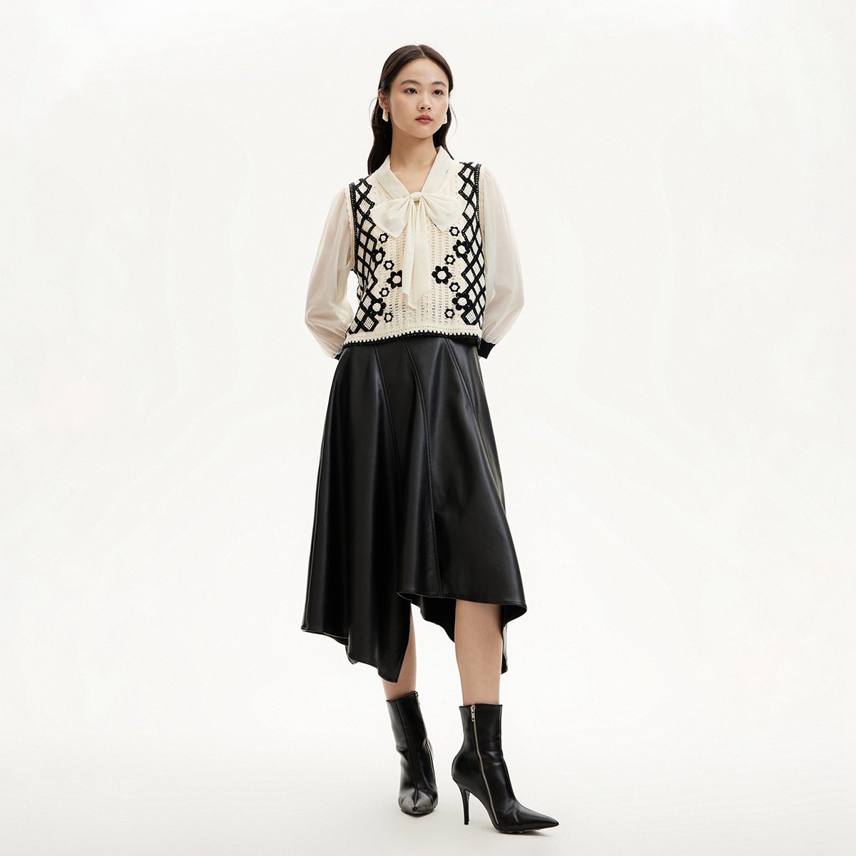 打底衫 OSA欧莎小立领蕾丝雪纺衫 横纹肌理长袖 新款 上衣 女2025秋季
