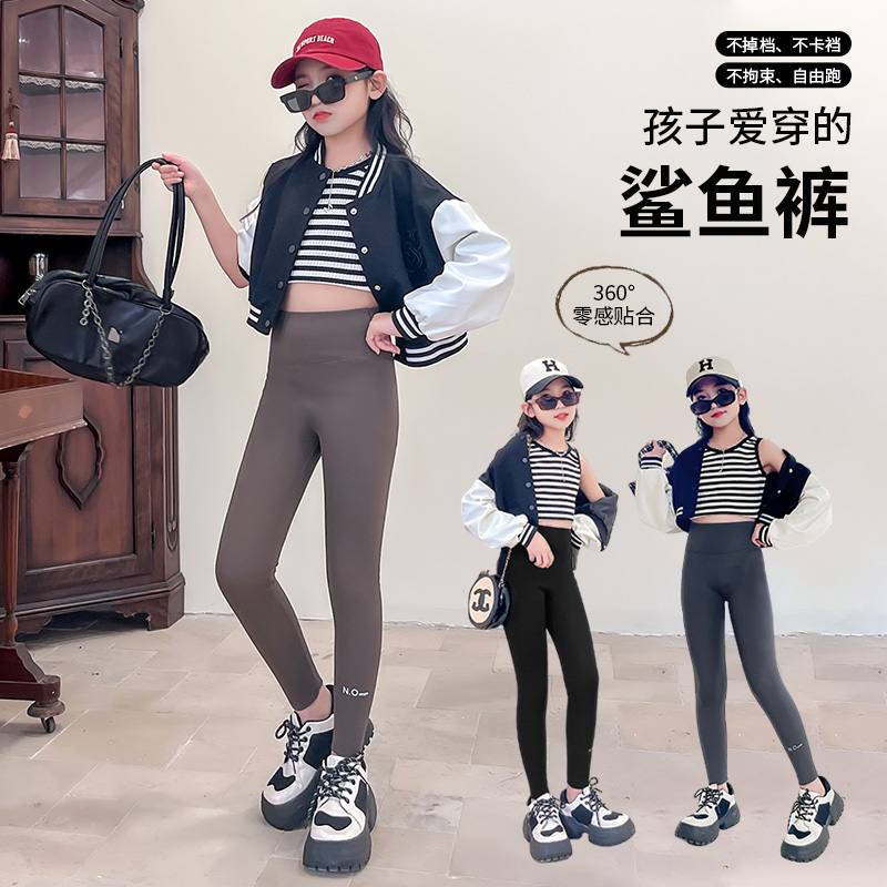 高腰加厚芭比裤 子女童外穿瑜伽裤 秋冬一体绒打底裤 儿童加绒鲨鱼裤