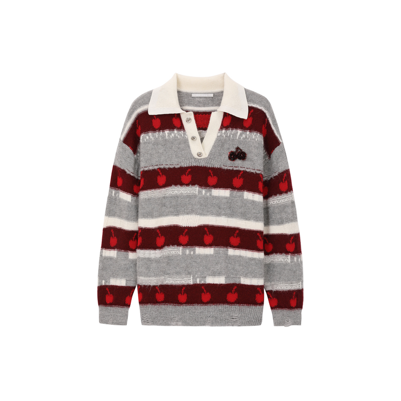 REVAN芮范2024冬樱桃系列条纹毛衣连衣裙RM91103307 庆怜同款