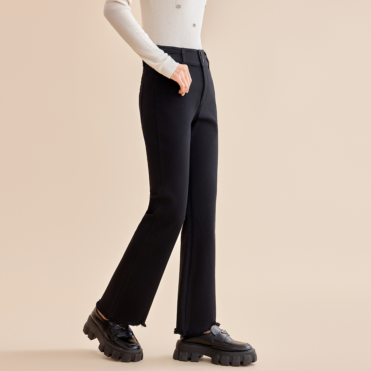 女2025冬季 裤 新款 显瘦长款 子 复古棉质弹力修身 谷邦高腰喇叭牛仔裤