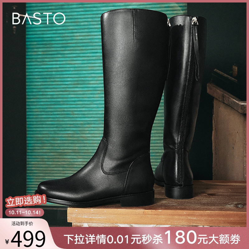 粗腿大筒围V口骑士长靴女 百思图流浪者冬商场新款 关晓彤同款