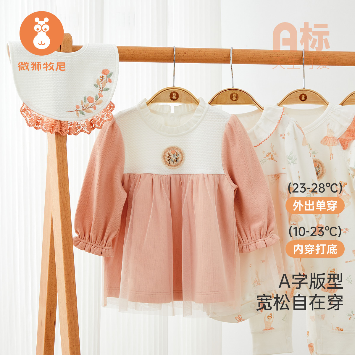 微狮牧尼宝宝连衣裙早秋女童裙子外出服小女孩公主裙洋气撞色拼接