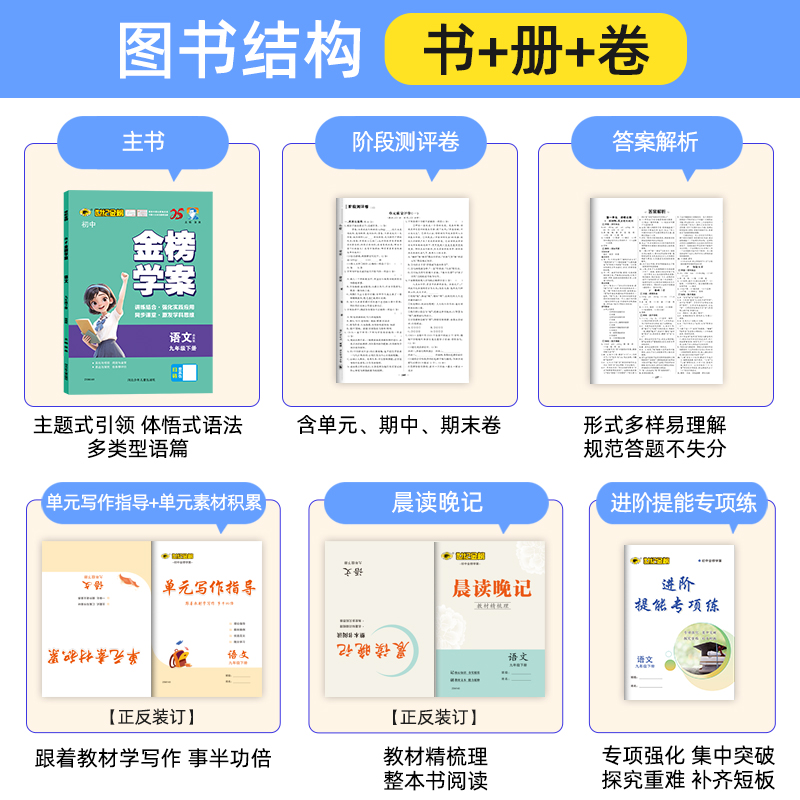 九9年级下册 语文 初中金榜学案初三下学期教材同步训练课时随堂练习单元 综合检测试卷晨读晚记单元 世纪金榜 写作指导正版 25版