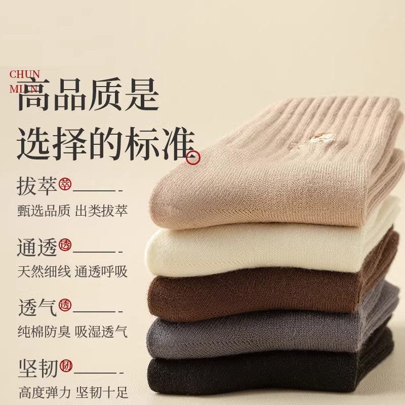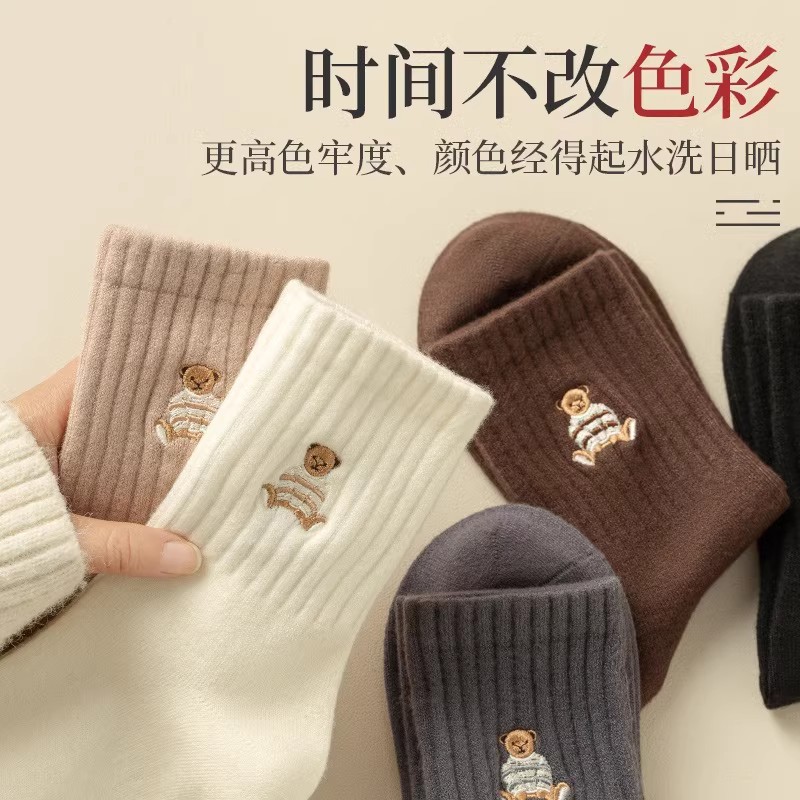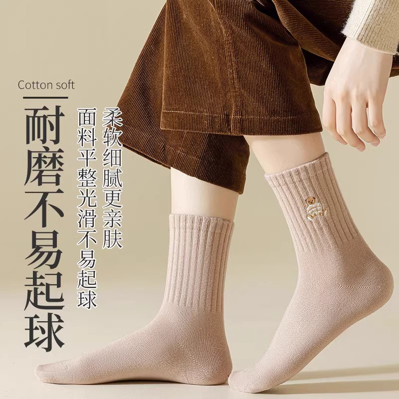 诸暨袜子女士纯棉中筒袜春秋款 2024冬可爱小熊美拉德无骨长袜防臭