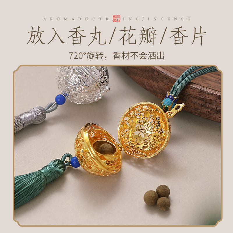 葡萄花鸟纹银香囊杨贵妃同款 香囊球古风汉服配饰随身挂件车载香薰